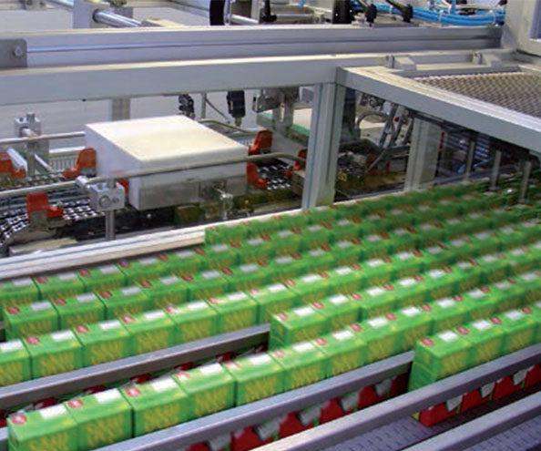 該機型廣泛應用于飲料、乳品和食品行業,全自動化二次包裝瓶裝和聽裝產品,大幅提高生產效率及節約包裝成本。